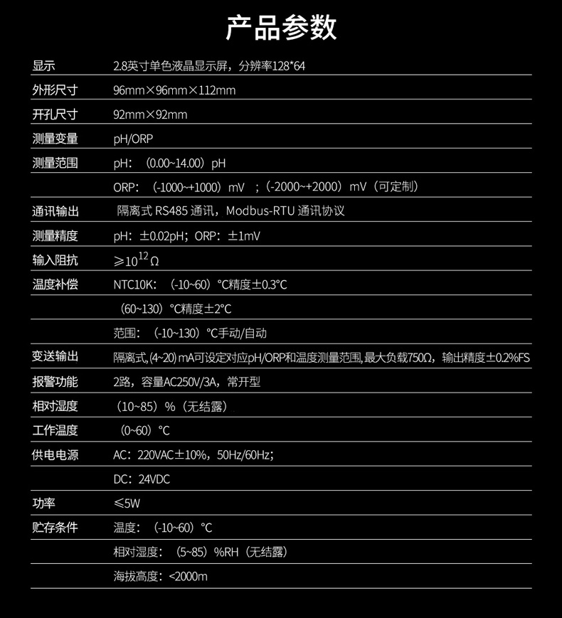 | 精度 | pH:±0.02pH;ORP:±1mV |